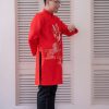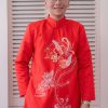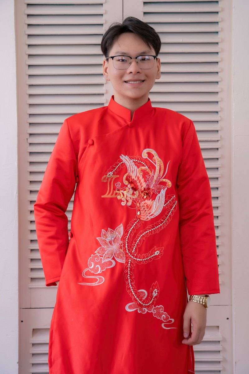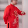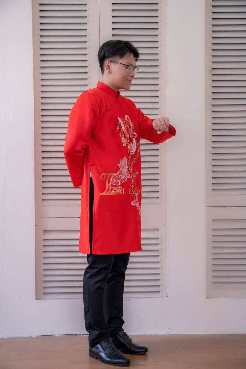 Thông tin chi tiết Áo Dài Cưới Chú Rể Đỏ Chim Phụng Hoa Sen CRĐ49