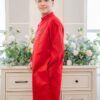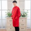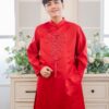 Áo Dài Cưới Chú Rể Lụa Đỏ Đô Chim Trắng – CRĐĐ15