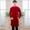 Áo Dài Chú Rể Đỏ Nhung Trơn – CDCRĐN26 là lựa chọn hoàn hảo cho chú rể, góp phần tạo nên một lễ cưới đầy ấn tượng và đáng nhớ. Áo dài chú rể chất liệu nhung với bề mặt mềm mại, mịn màng cùng độ bóng nhẹ tạo nên sự nổi bật và thu hút mọi ánh nhìn. Màu đỏ tươi tắn, rực rỡ, tượng trưng cho sự may mắn, hạnh phúc và thịnh vượng, rất phù hợp với không khí ngày lễ trọng đại như cưới hỏi.