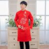 Áo Dài Cưới Chú Rể Lụa Đỏ Hỷ To Đính Đá – CRĐ25