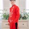 Thông tin chi tiết Áo Dài Cưới Chú Rể Lụa Đỏ Hỷ Cánh Chim – CRĐ24