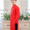 Áo Dài Cưới Chú Rể Lụa Đỏ Hỷ Cánh Chim – CRĐ24