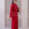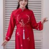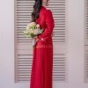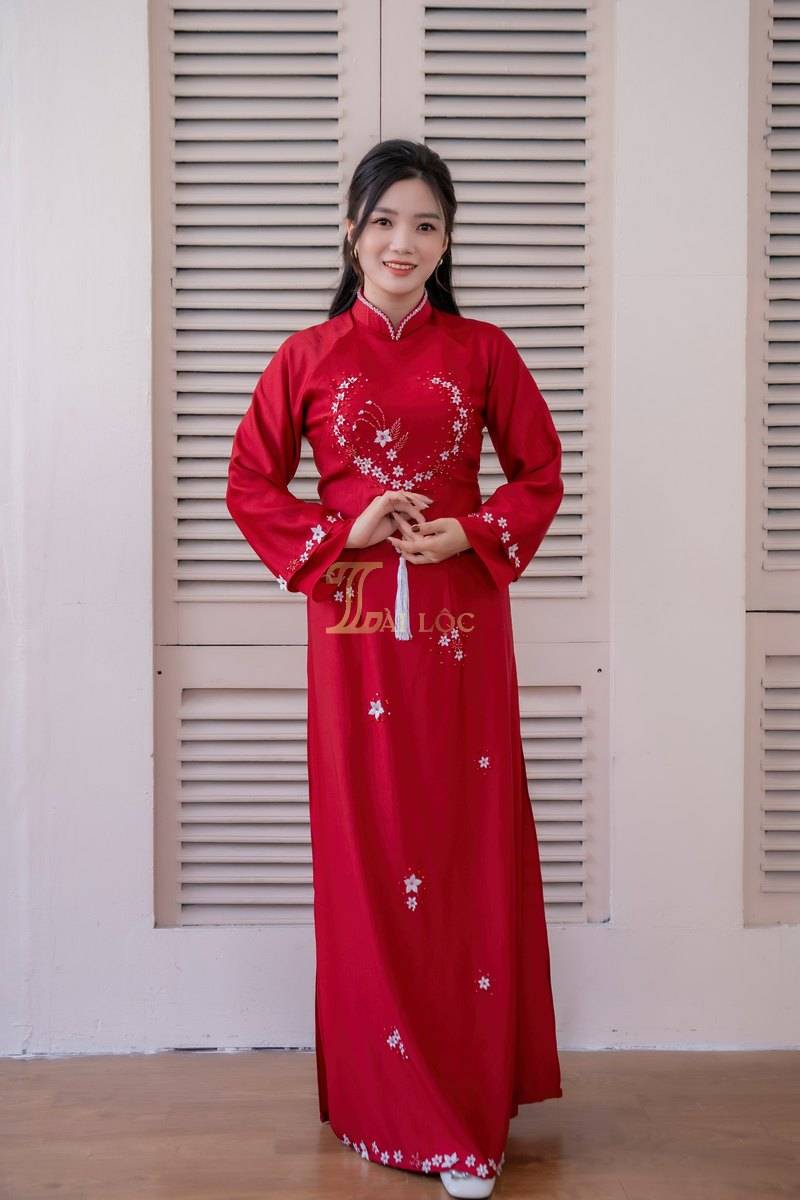 Áo Dài Cưới Cô Dâu Đỏ Kết Nhành Hoa Đào Trắng CRĐ43 mang kiểu dáng áo dài truyền thống tay dài, mang đến sự kết hợp hoàn hảo giữa nét cổ điển và phong cách hiện đại. Với tay dài thanh thoát và dáng áo duyên dáng, mẫu áo dài này không chỉ phù hợp với nghi thức cưới hỏi truyền thống mà còn tôn lên vẻ đẹp của cô dâu một cách nổi bật. Mẫu áo dài này được làm từ nhung tạo nên sự mềm mại và thoải mái khi mặc mà còn mang lại sự lấp lánh, tôn lên vẻ đẹp của áo dài. Màu đỏ của áo dài không chỉ rực rỡ mà còn mang ý nghĩa tượng trưng cho sự may mắn và hạnh phúc.