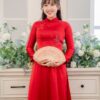Áo dài được may với chất liệu lụa đỏ đô cao cấp, mềm mại, mịn màng, mang đến cảm giác thoải mái khi mặc. Chất liệu có độ bóng nhẹ, giúp tôn lên vẻ đẹp rạng rỡ của cô dâu. Áo dài cổ cao truyền thống, ôm sát cơ thể, tôn lên đường cong quyến rũ của cô dâu. Thân áo dài xẻ tà cao, giúp cô dâu di chuyển dễ dàng và tạo sự thanh lịch.