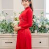 Áo Dài Cưới Cô Dâu Lụa Đỏ Đô Chim Trắng – CDĐĐ15