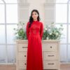 Áo Dài Cưới Cô Dâu Lụa Đỏ Vòng Hoa – CDĐ4