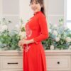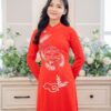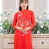 Áo Dài Cưới Cô Dâu Lụa Đỏ Ba Hoa – CDĐ33