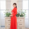 Áo Dài Cưới Cô Dâu Đỏ Nhung Trơn – CDĐN26