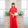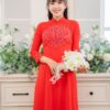 Áo Dài Cưới Cô Dâu Lụa Đỏ Ba Hoa – CDĐ33