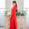 Áo Dài Cưới Cô Dâu Đỏ Nhung Trơn – CDĐN26
