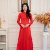 Áo Dài Cưới Cô Dâu Nhung Đỏ Đô Vai Lưới – CDĐĐN3