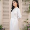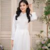 Áo Dài Cưới Cô Dâu Lụa Trắng Hoa Chéo – CDT21