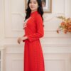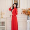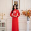 Áo Dài Cưới Cô Dâu Nhung Đỏ Đô Chữ Hỷ Kẹp Hoa – CDĐĐ34