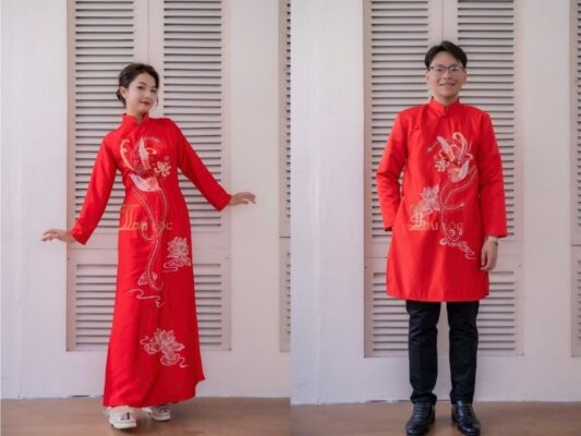 Lý do mẫu áo dài cưới cô dâu chú rể màu đỏ được ưa chuộng?