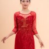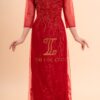 Áo Dài Bà Chị Sui Đỏ Lụa Kết Cườm Dọc Tà Đẹp XL-BSĐL9