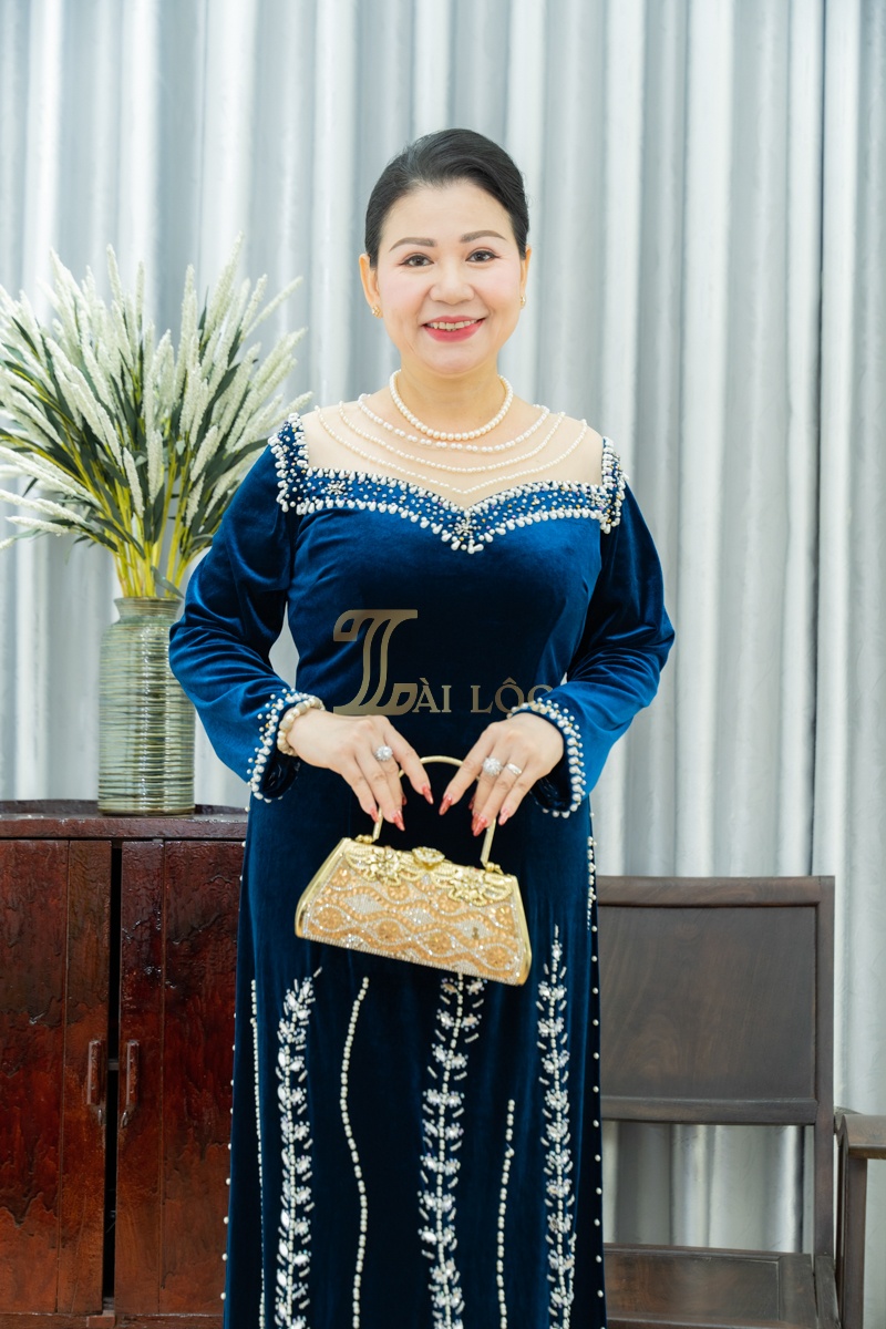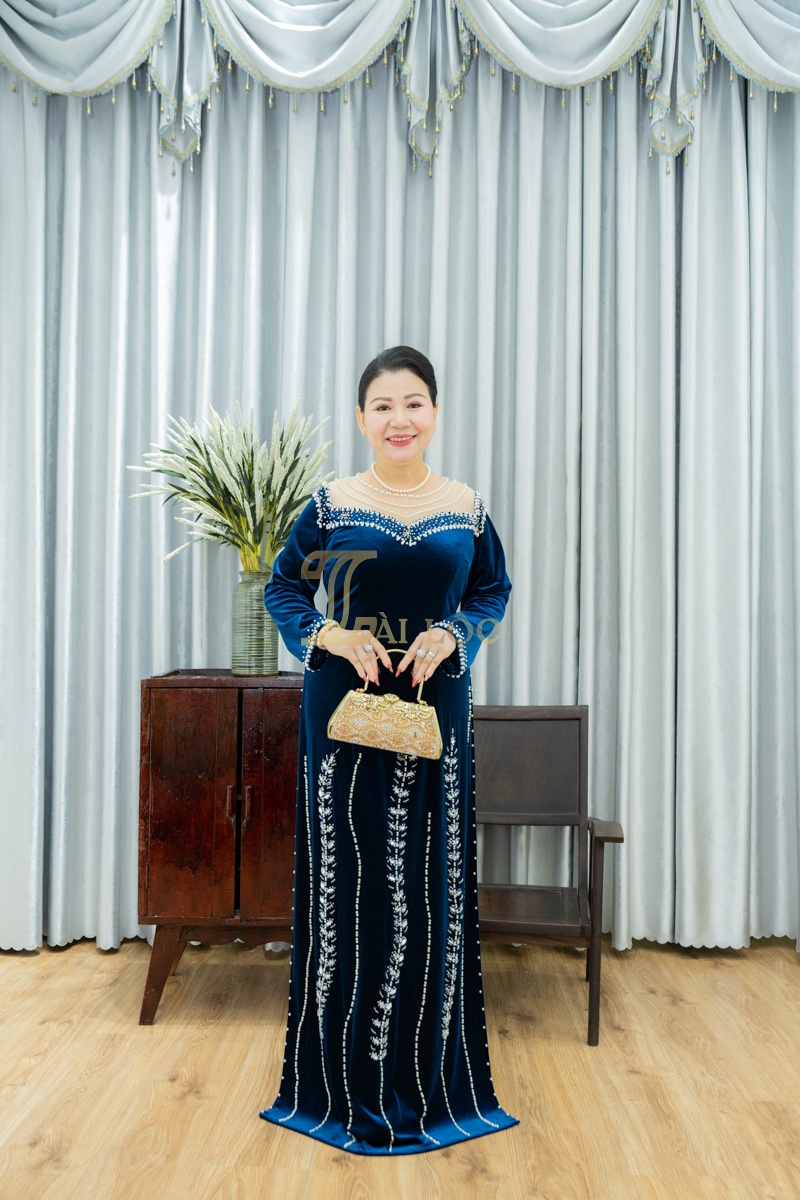- Áo Dài Bà Sui Nhung Xanh Biển BSX155