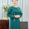 - Áo Dài Bà Sui Xanh Đen Cổ Ren Kết Cườm Bsxt169