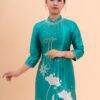 Áo Dài Bà Sui Xanh Lụa Công Uyên Ương Kết Cườm Cổ XL-BSX34