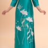 Áo Dài Ngồi Sui Xanh Nhung Bông Sen Trăng Cườm Cổ XL-BSXN35