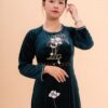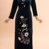 Áo Dài Bà Chị Sui Xanh Nhung Đính Cườm Bông Sen XL-BXN24