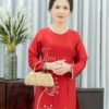 - Áo Dài Sui Gia Đỏ Nhung Ren Kết Cườm BSĐT182