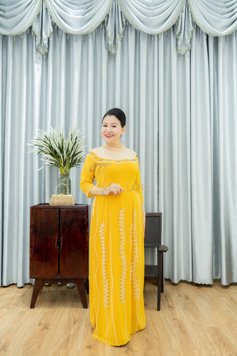 THAM KHẢO CÁC MẪU ÁO Dài BÀ SUI MÀU VÀNG ĐẸP TẠI TÀI LỘC CƯỚI