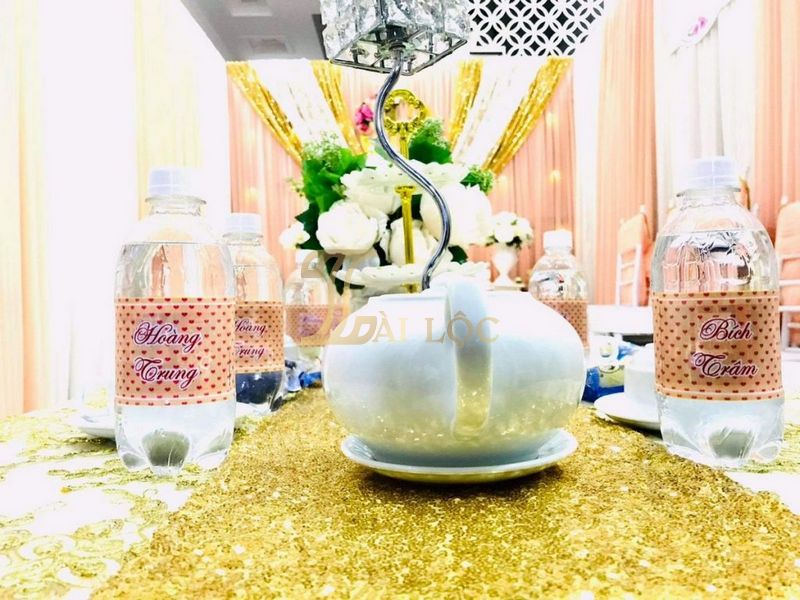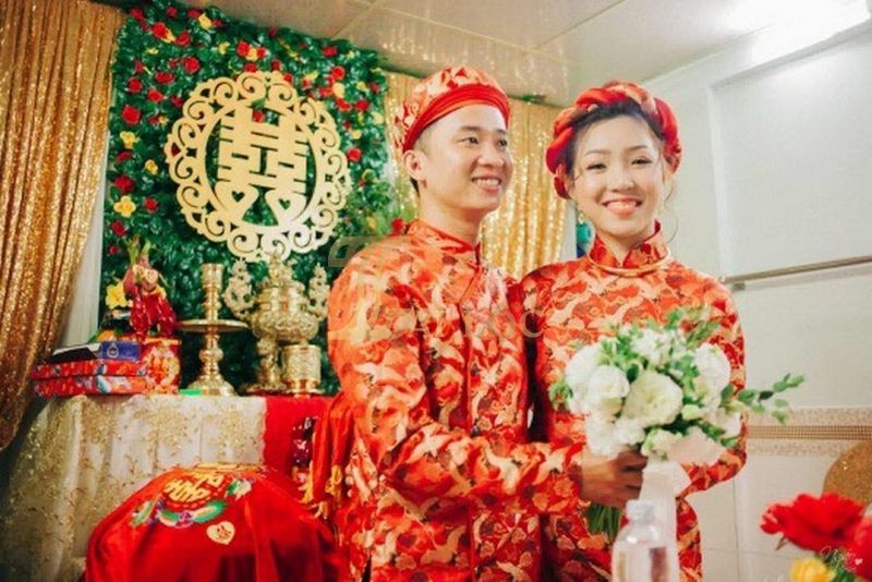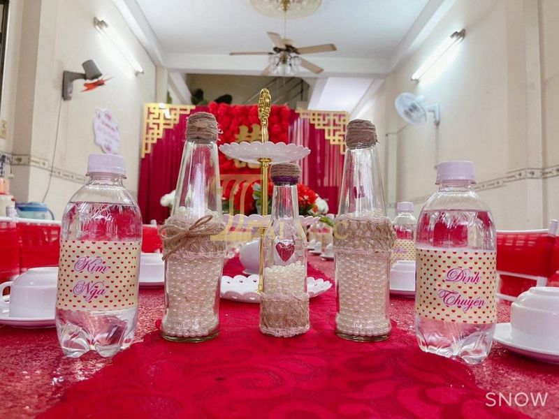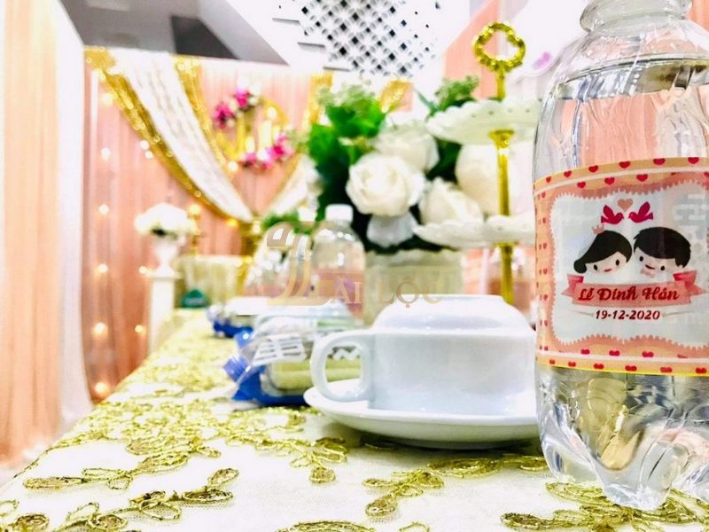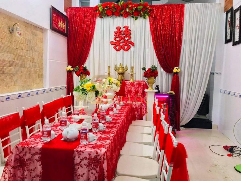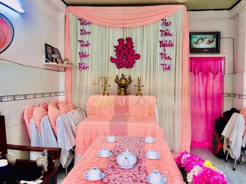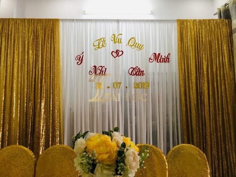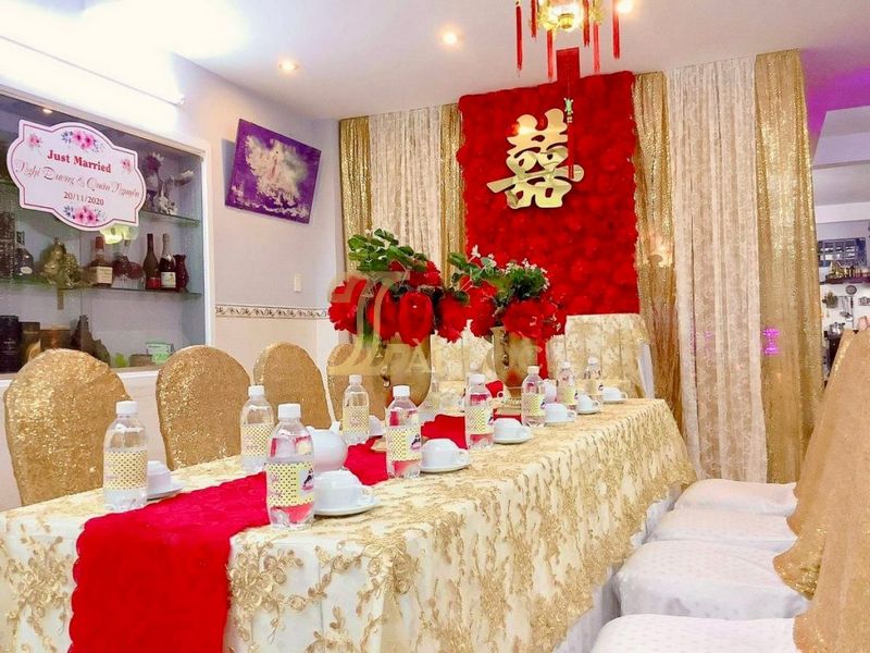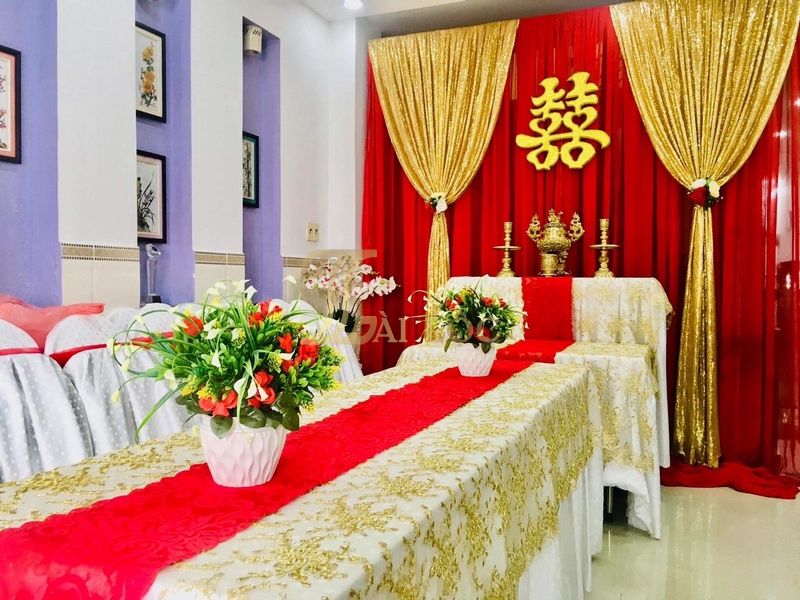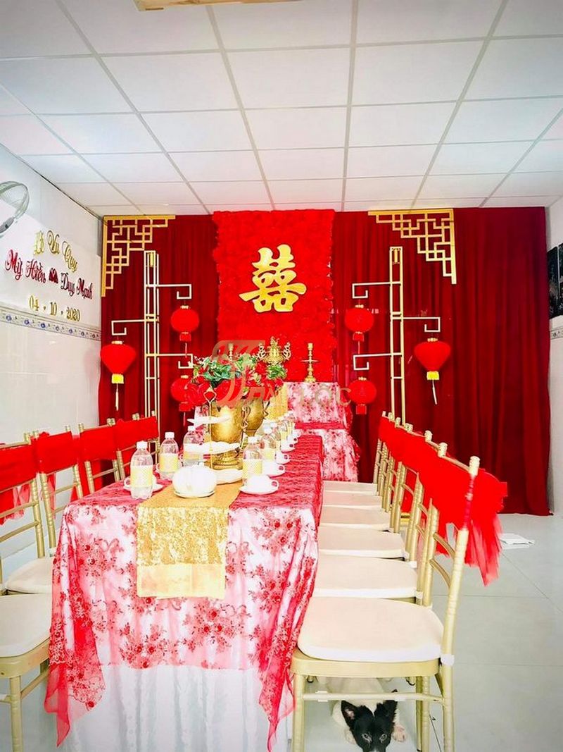 Chữ Hỷ hoặc câu đối đỏ: Chữ Hỷ và câu đối đỏ là những yếu tố không thể thiếu trong lễ cưới truyền thống, giúp tăng thêm sự ấn tượng và ý nghĩa cho ngày trọng đại. Khi đặt chữ Hỷ và câu đối đỏ, cần đặt chúng ở vị trí trung tâm và đảm bảo rằng câu đối được cố định ở vị trí đối xứng để tạo ra sự hài hòa toàn diện. Để làm cho bàn thờ gia tiên trở nên nổi bật và ấn tượng hơn, bạn có thể sử dụng đèn LED phối hợp màu sắc hài hòa với màu của bàn thờ để trang trí.