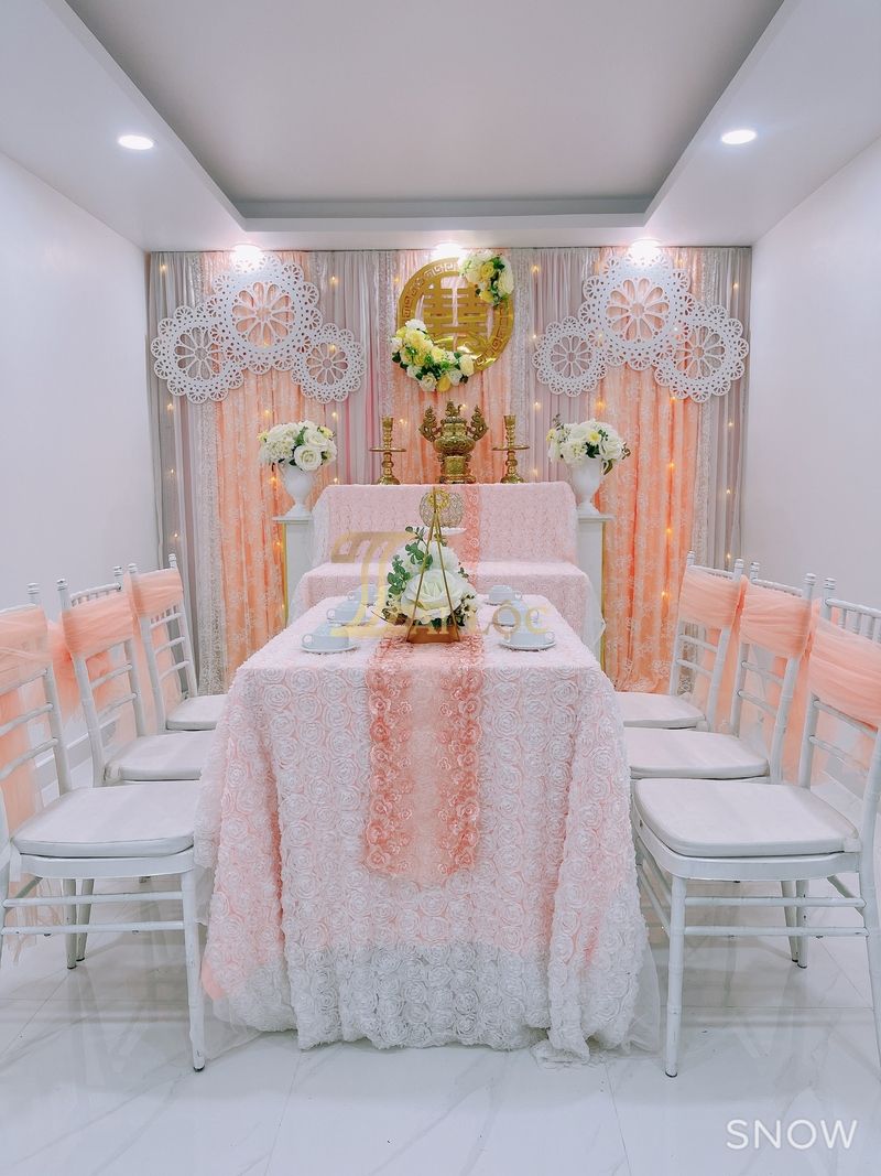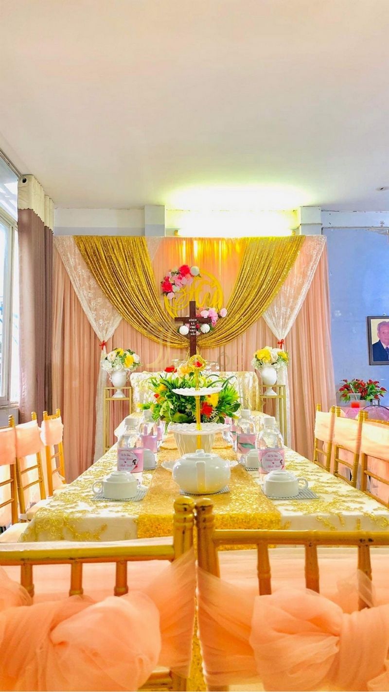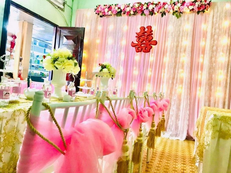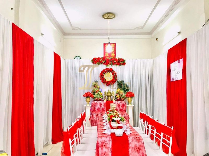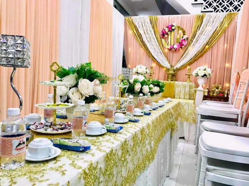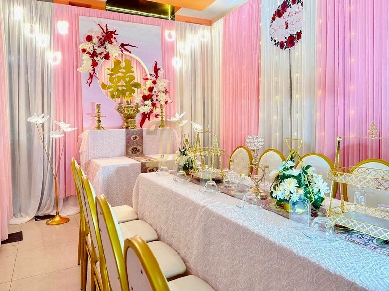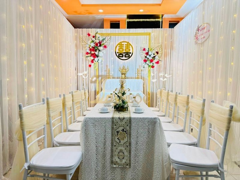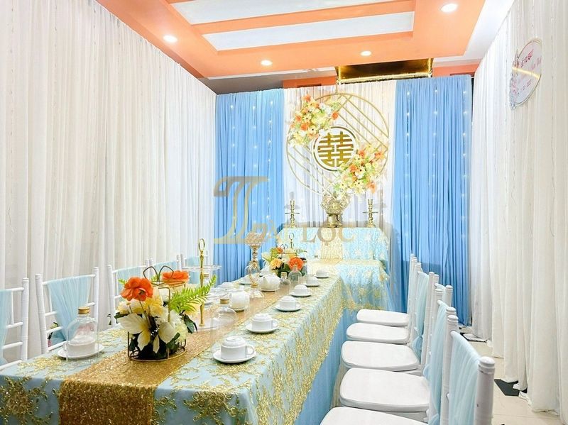 • Không gian đón khách: Các yếu tố trang trí nên được thiết kế sao cho phù hợp với không gian bao gồm bàn ghế, khu vực ngồi và rạp cưới, nhằm tạo ra một tổng thể hài hòa về màu sắc và thiết kế.