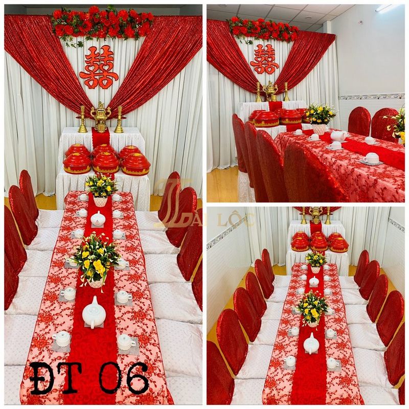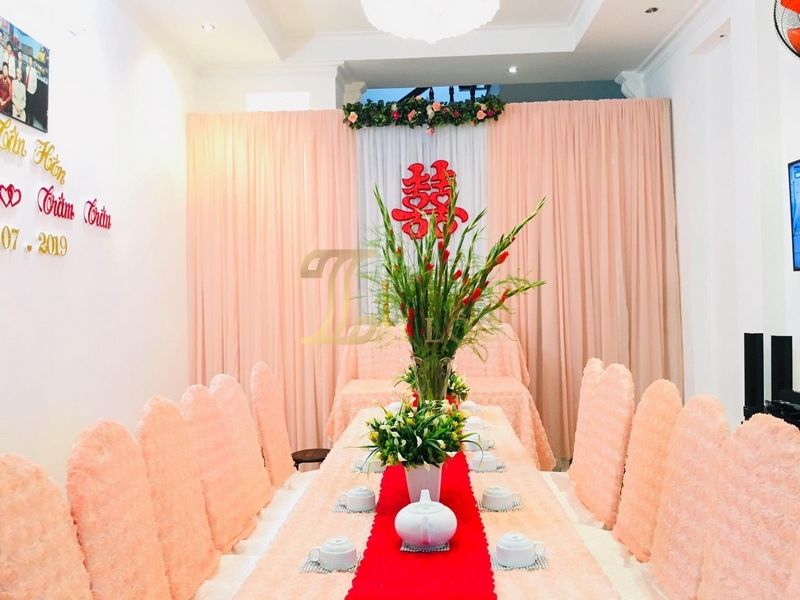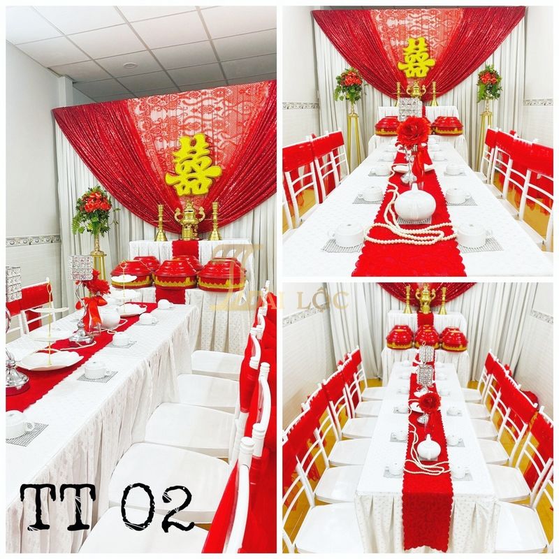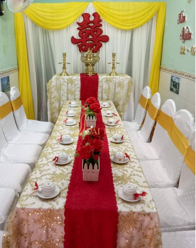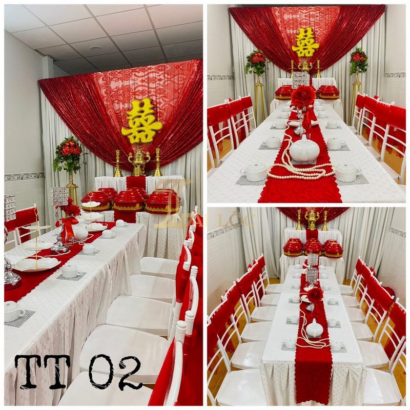 – 2 bàn hai họ 12 ghế  ( 2 bàn dài 2.4m) (bao bàn ghế bằng vải gấm sang trọng k sử dụng vải thun)