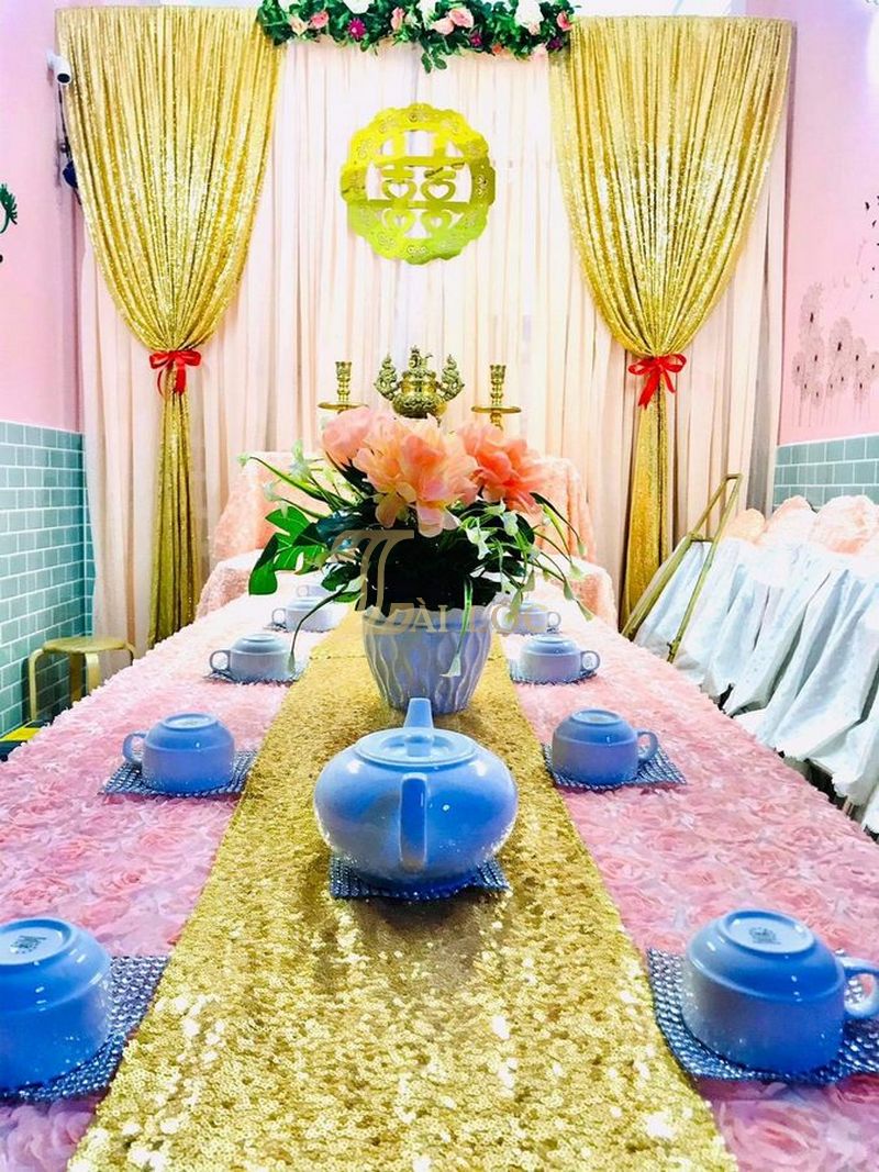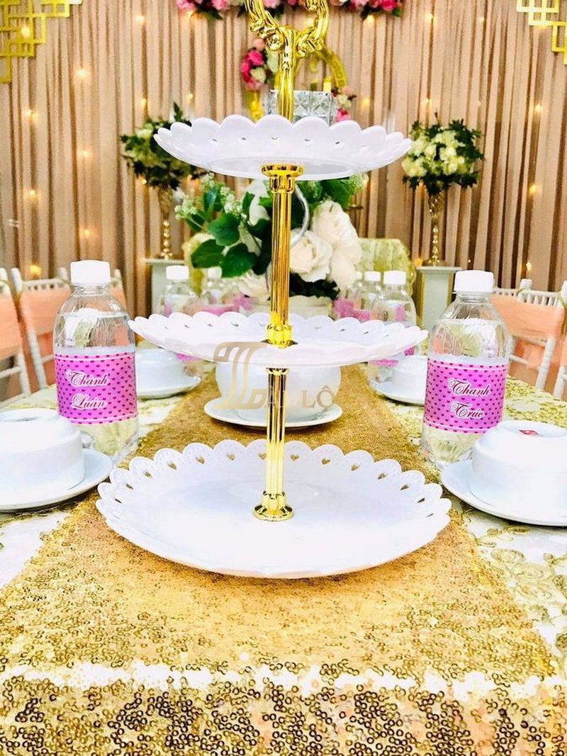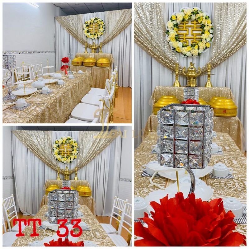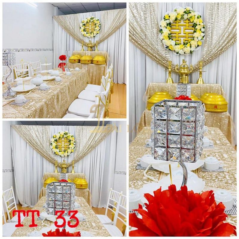 – Đĩa bánh 3 tầng , pha lê 2 đôn hoa cấp cao , 2 bình hoa cao cấp -2 bộ tách trà và 12 ly tách 2 bình hoa vải bàn 2 họ