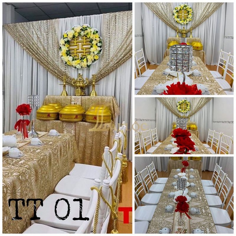 – Bàn để mâm quả cưới Bàn 2 họ 12 ghế tiffany cao cấp (2 bàn dài 2.4m)