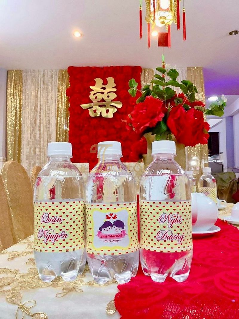 12 chai nước suối thiết kế theo tong in tên CD-CR + Bộ chữ tên CD-CR
