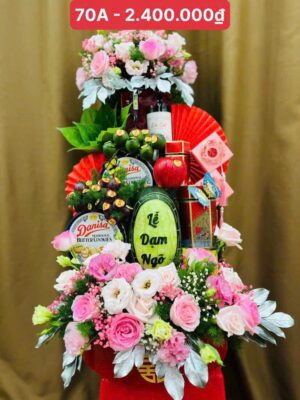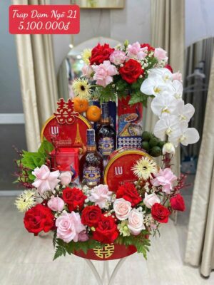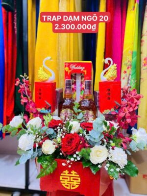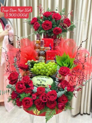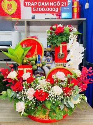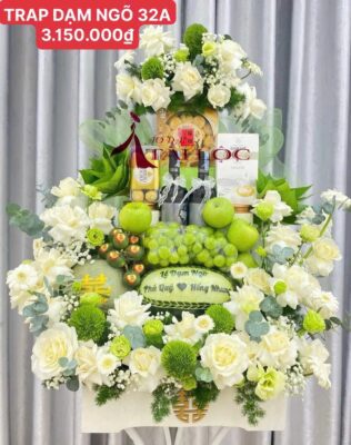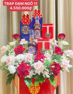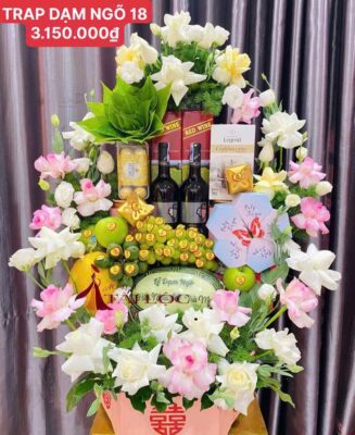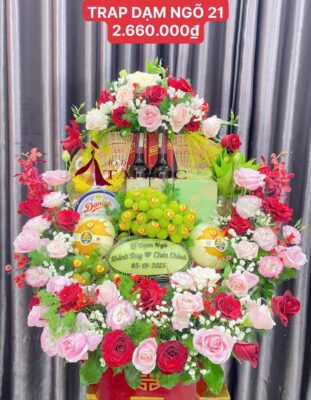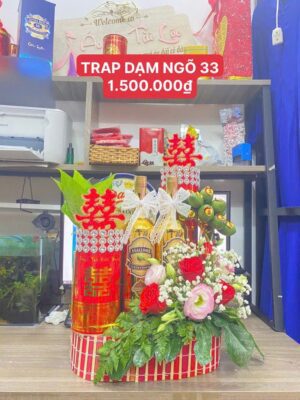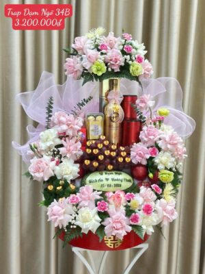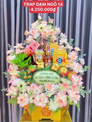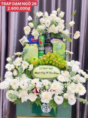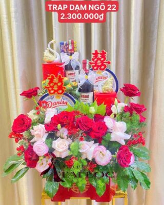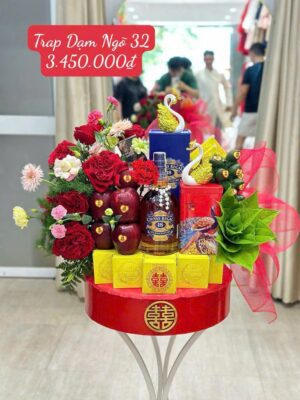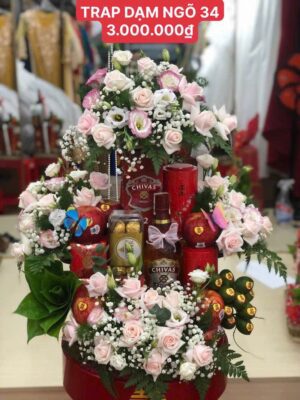 Mâm lễ vật có đầy đủ lễ vật với chất lượng hảo hạng như trầu cau, thuốc lá ngoại, rượu Chivas, chè Thái Nguyên, mứt sen, bánh cốm Nguyên Ninh, hoa quả…Ngoài ra, tráp còn được trang trí tỉ mỉ bằng hoa tươi vô cùng đẹp mắt nên có mức giá từ 1.000.000 – 4.000.000 đồng.