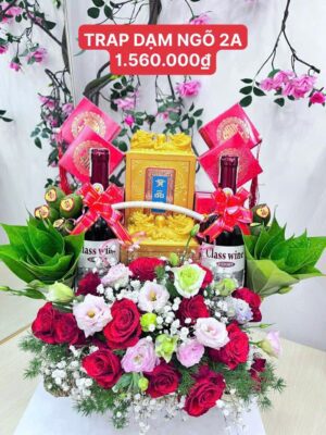 Tráp dạm ngõ sang trọng được trang trí cầu kỳ và công phu hơn hai loại tráp kể trên. Ngoài những lễ vật dạm ngõ truyền thống thì còn có thêm phần quà bánh và hoa quả theo mùa được kết cẩn thận trên lẵng hoặc giỏ cói sang trọng.