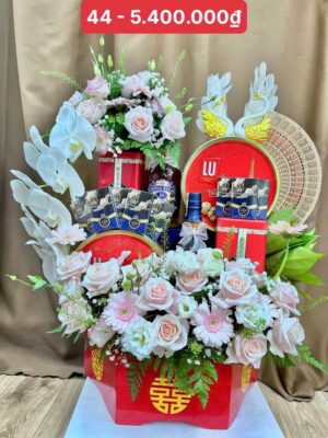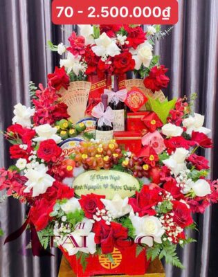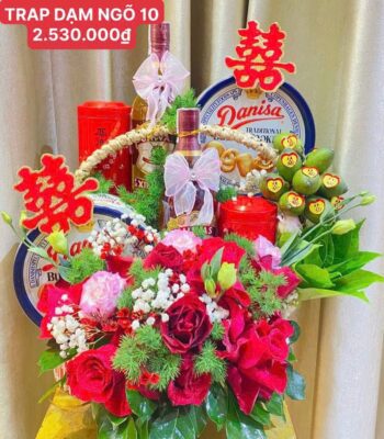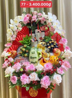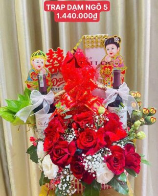 Khi lựa chọn hoa tươi trang trí, hãy ưu tiên những loại hoa tươi lâu, có mùi hương dễ chịu như hoa hồng hoặc hoa lan. Ngoài ra, nhà trai có thể sử dụng các phụ kiện trang trí khác như chữ song hỷ, vải kim tuyến để làm nổi bật tráp lễ dạm ngõ nhé.